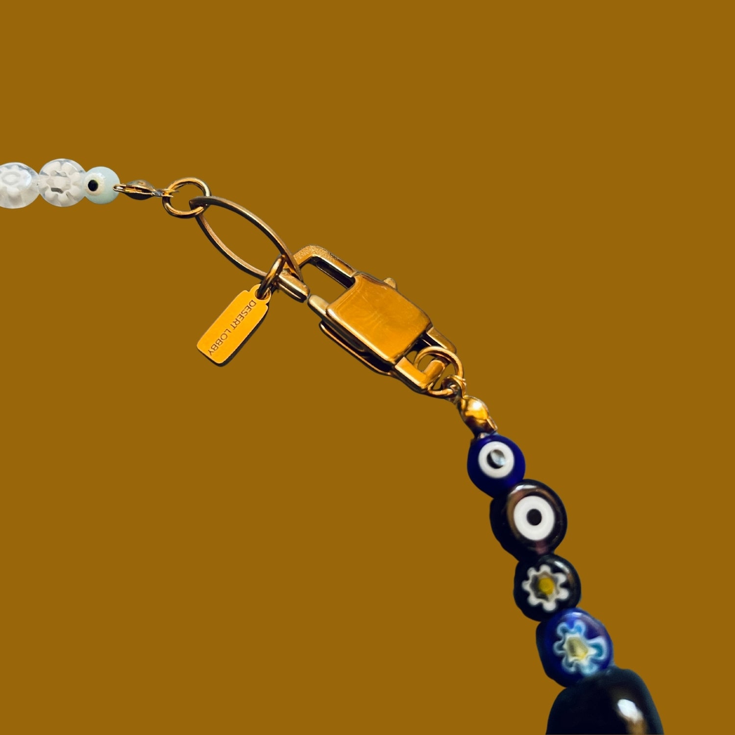 Desert Lobby ürünlerinde kullanılan boncuklar genellikle doğal taş ve camdır. Bu malzemeler tek tek elde üretilir ve elle şekillendirilir. Bu sebeple her bir ürün kendine has ve biriciktir 🧿 Görselde görünen ürün ile size ulaşacak ürün arasında boncuk şekilleri ve renk tonları anlamında ufak farklılıklar olması normaldir.