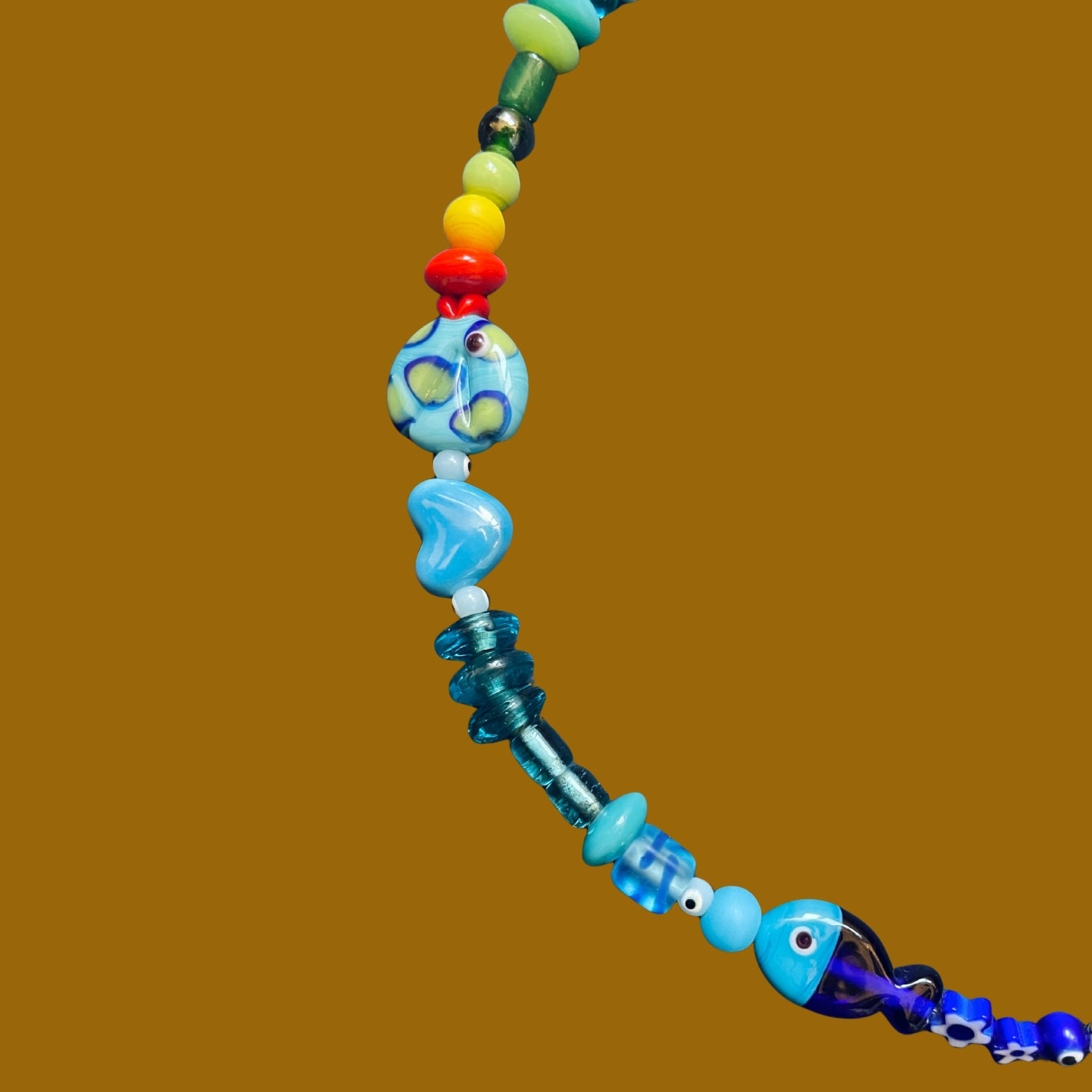 Büyük Balık Küçük Balık 2 | Murano Balık Figürlü Renkli Cam Kolye