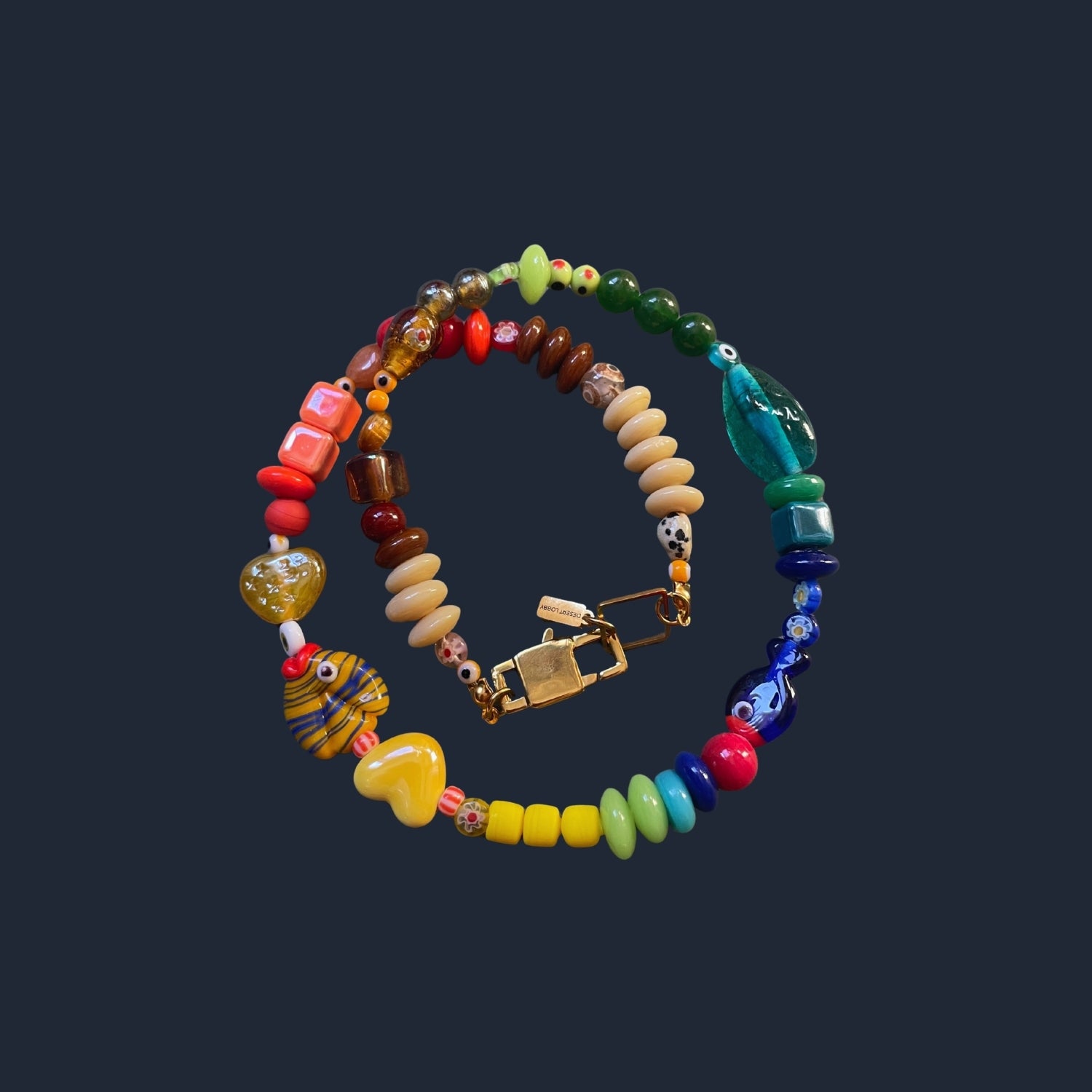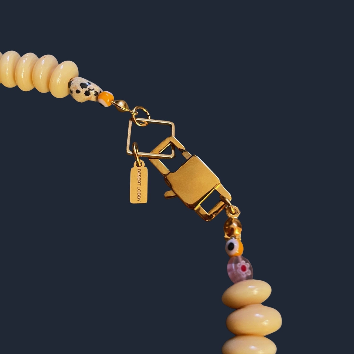 Desert Lobby ürünlerinde kullanılan boncuklar genellikle doğal taş ve camdır. Bu malzemeler tek tek elde üretilir ve elle şekillendirilir. Bu sebeple her bir ürün kendine has ve biriciktir 🧿 Görselde görünen ürün ile size ulaşacak ürün arasında boncuk şekilleri ve renk tonları anlamında ufak farklılıklar olması normaldir.