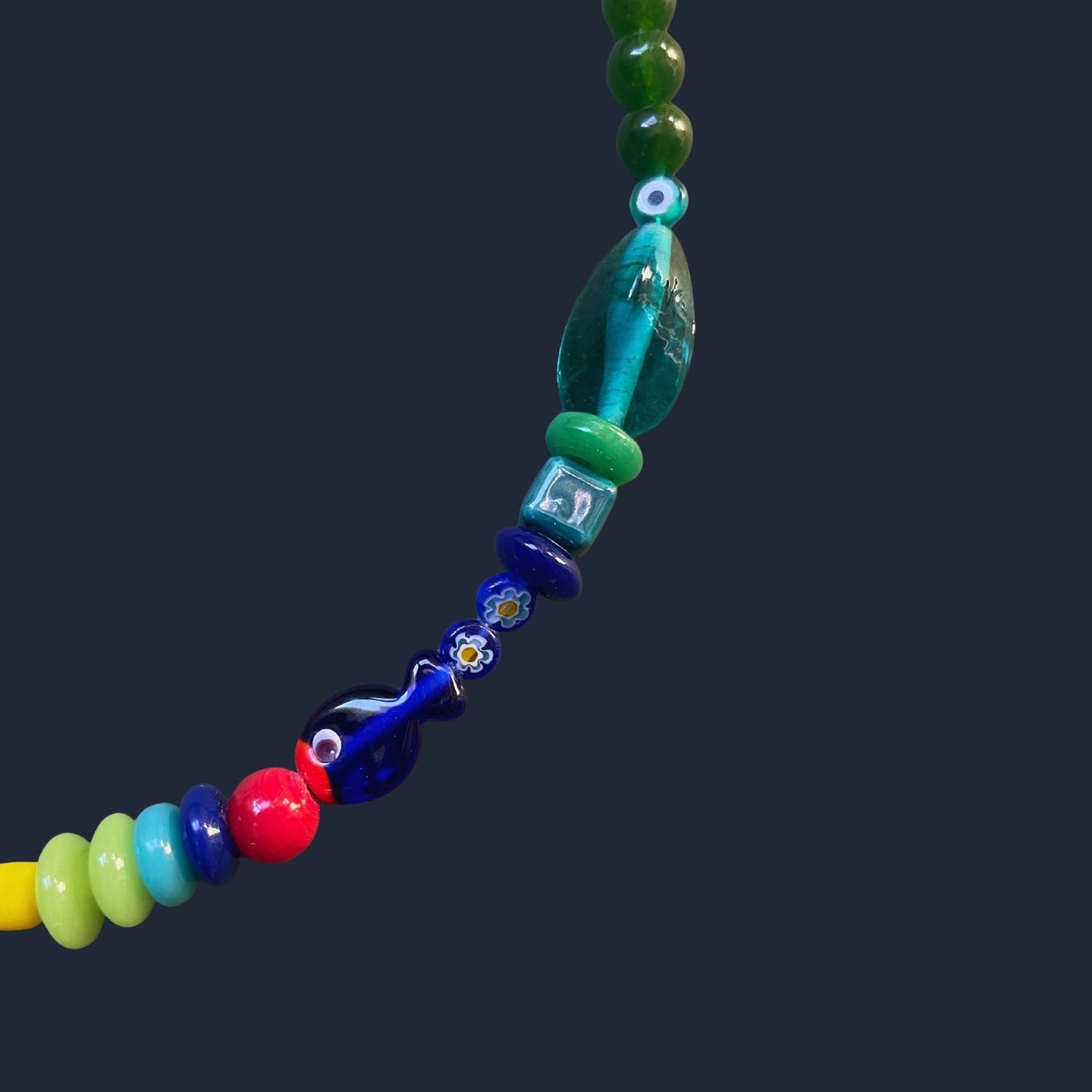 Büyük Balık Küçük Balık | Murano Balık Figürlü Renkli Cam Kolye