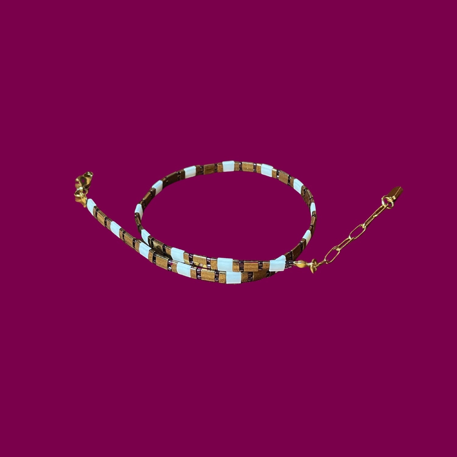 Crown | Krem ve Bronz Detaylı Miyuki Tila Boncuklu Choker Kolye