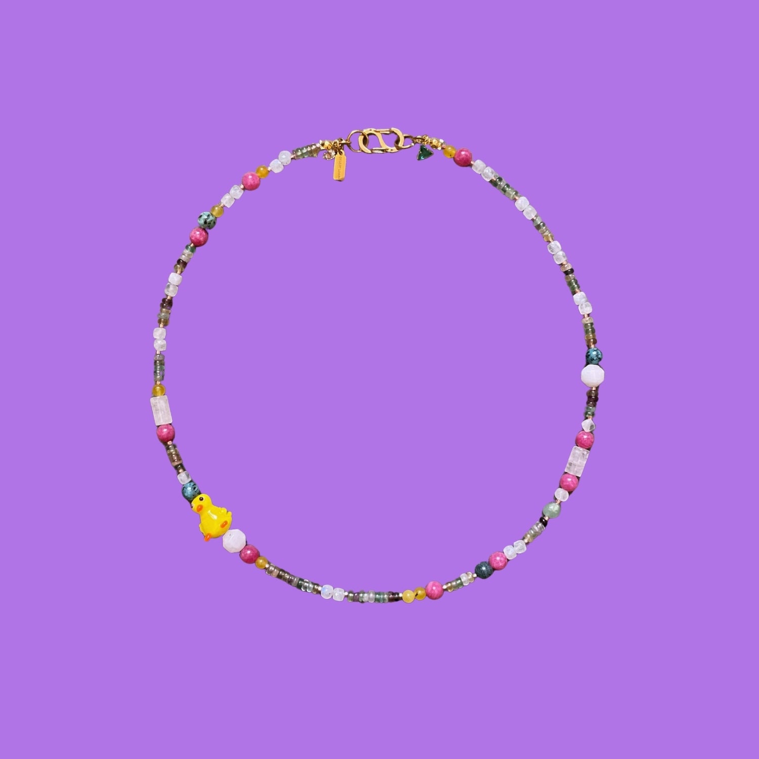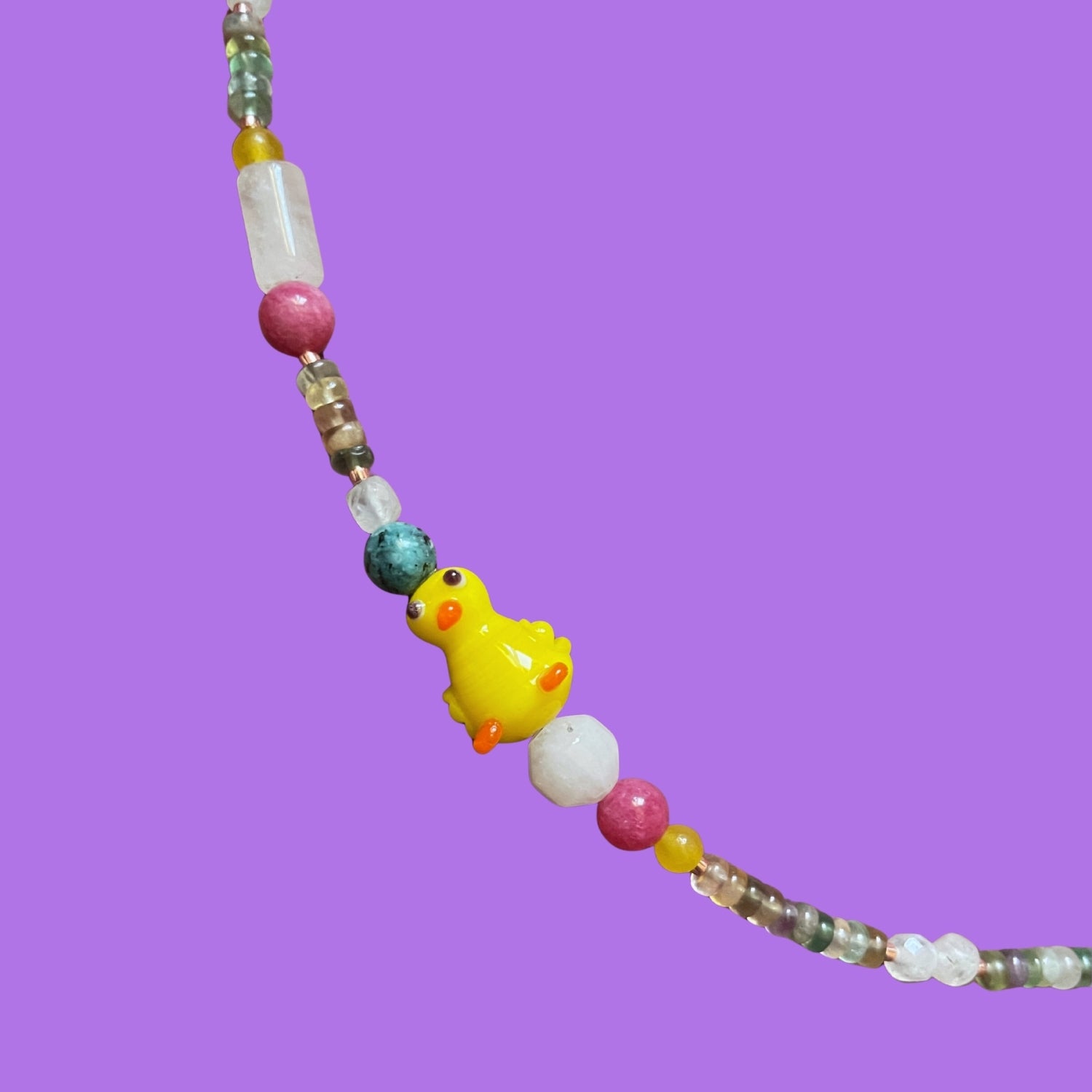 Duckling Baby | Civciv Ördek Figürlü Florit ve Ay Taşı Doğaltaş Kolye