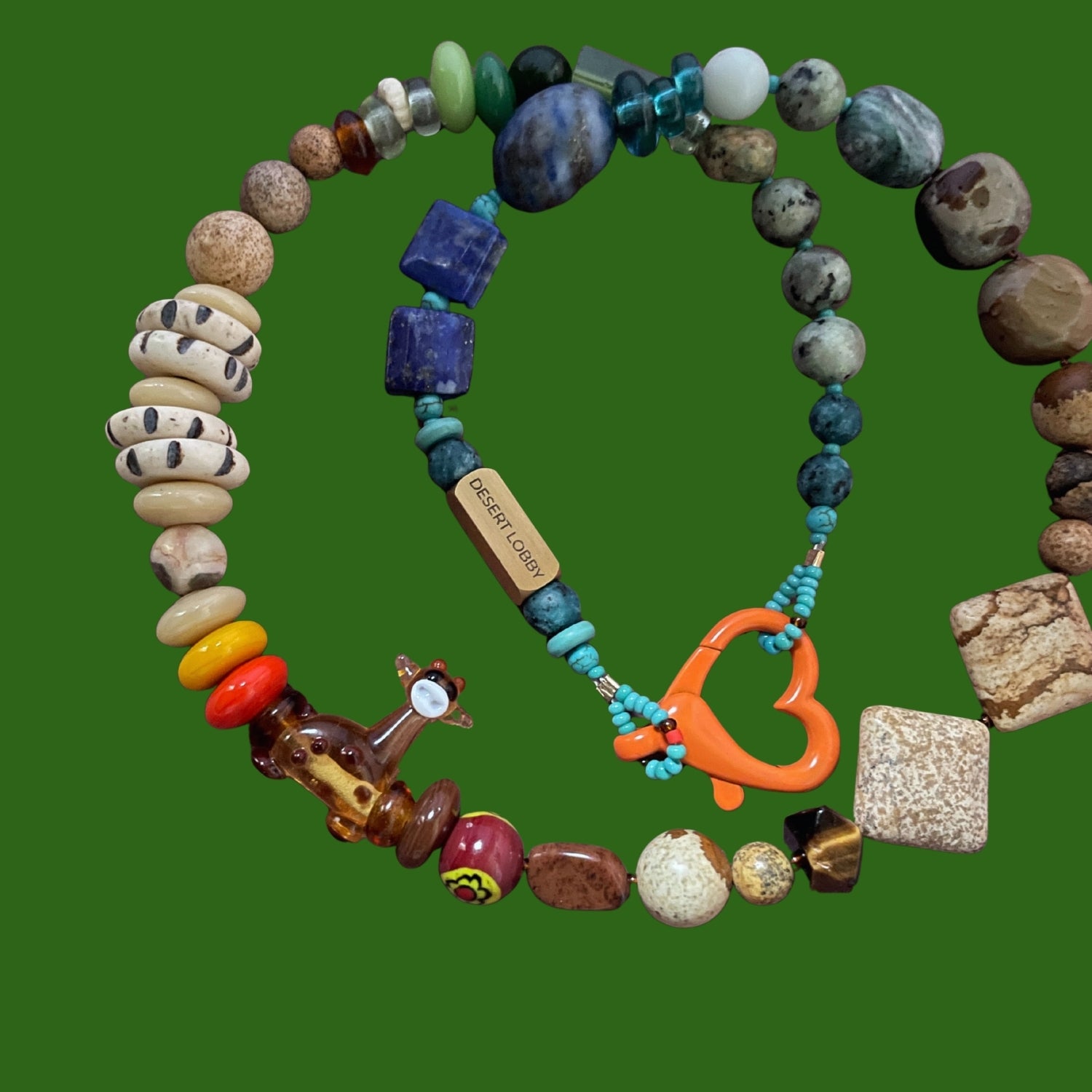 Giraffe | Doğaltaşlı Cam Boncuklu Zürafa Figürlü Kolye