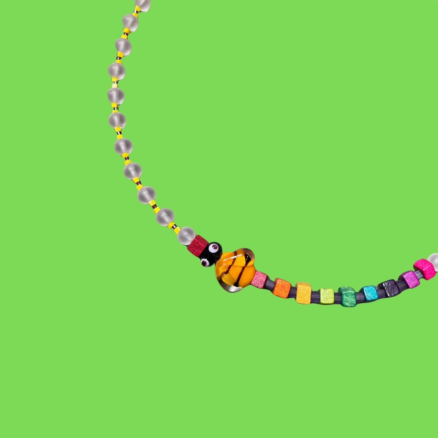 Honey | Renkli Ahşap Boncuklu Arı Figürlü Eğlenceli Kolye