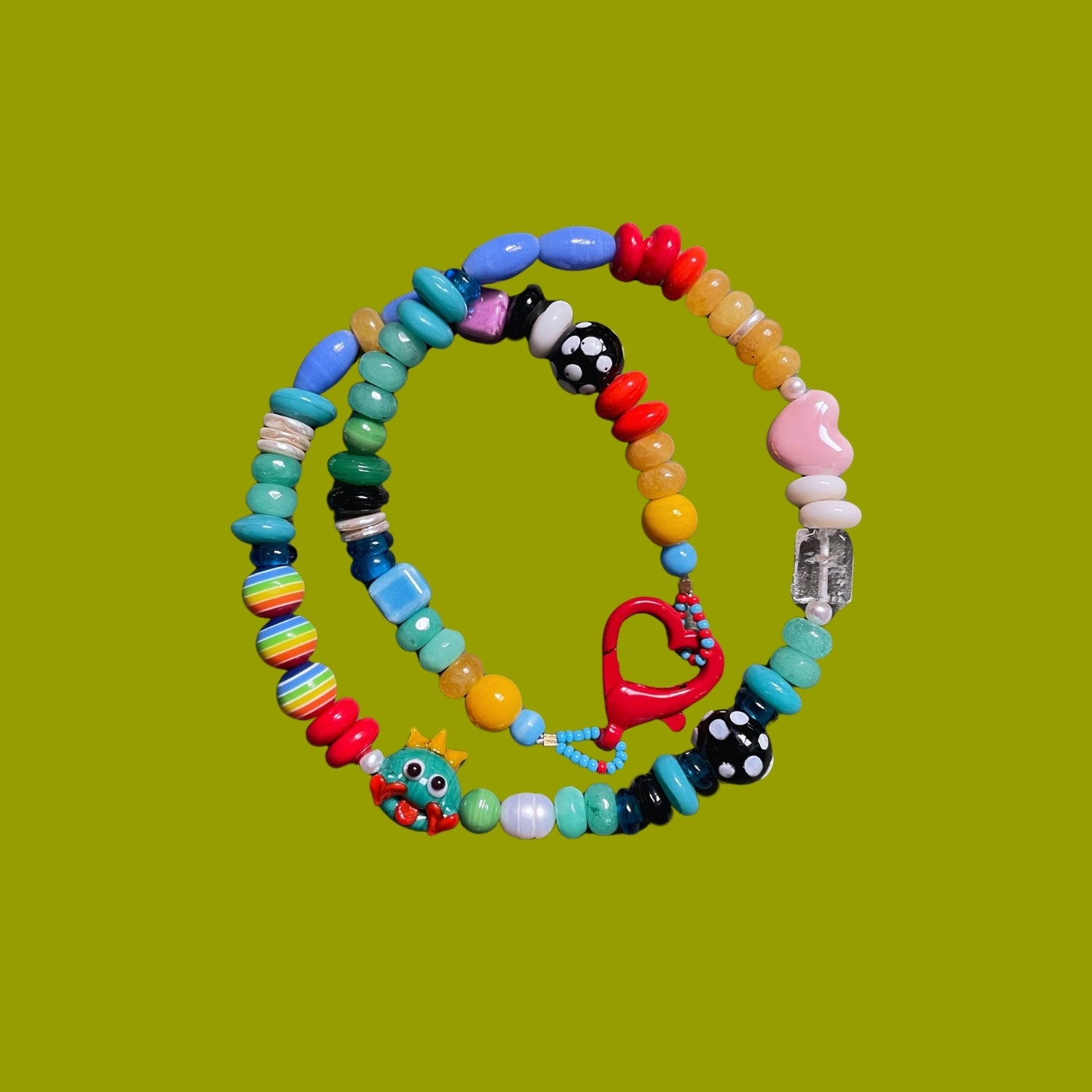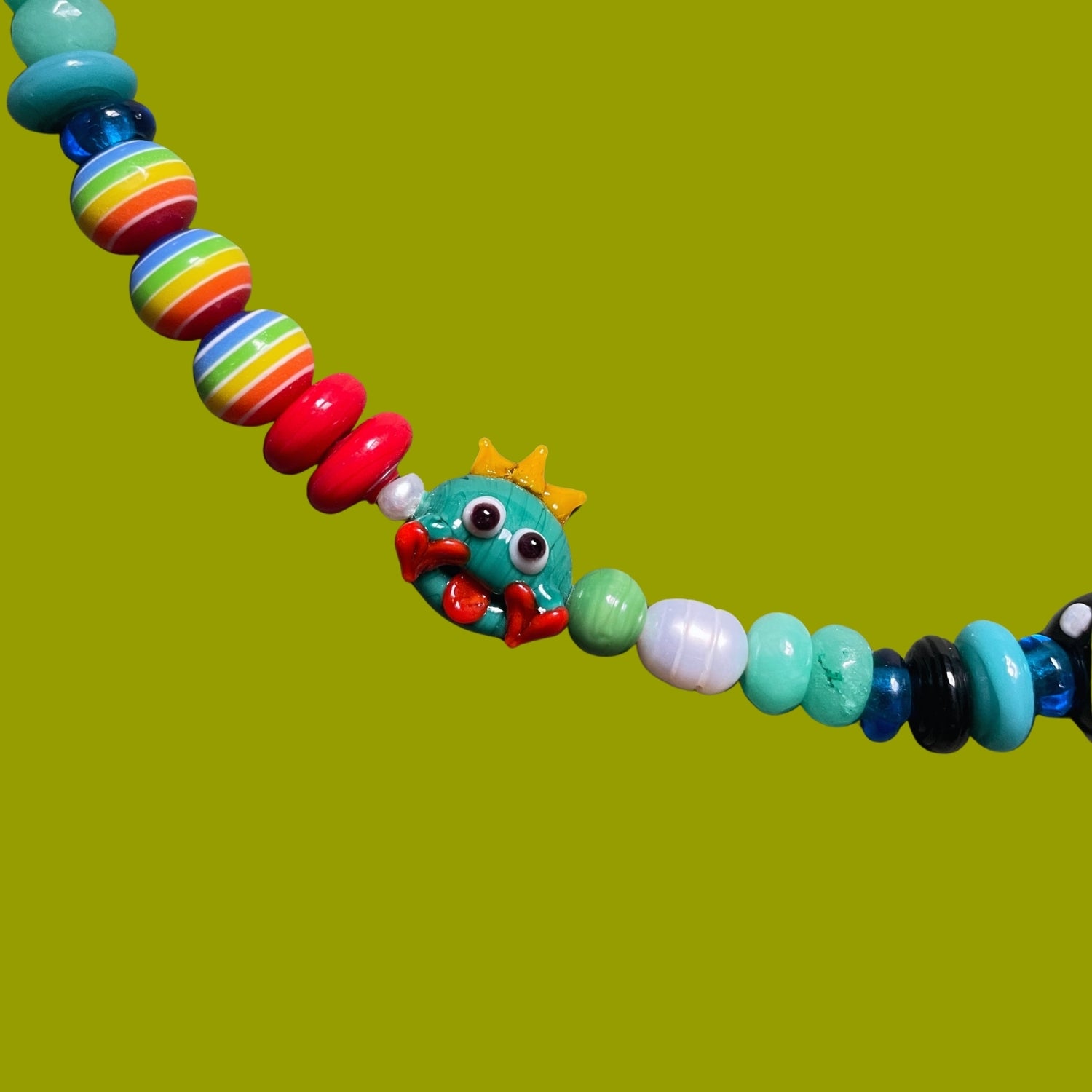 Kiss The Prince | Kurbağa Prens Figürlü Masalsı ve Eğlenceli İnci ve Cam Boncuklu Kolye