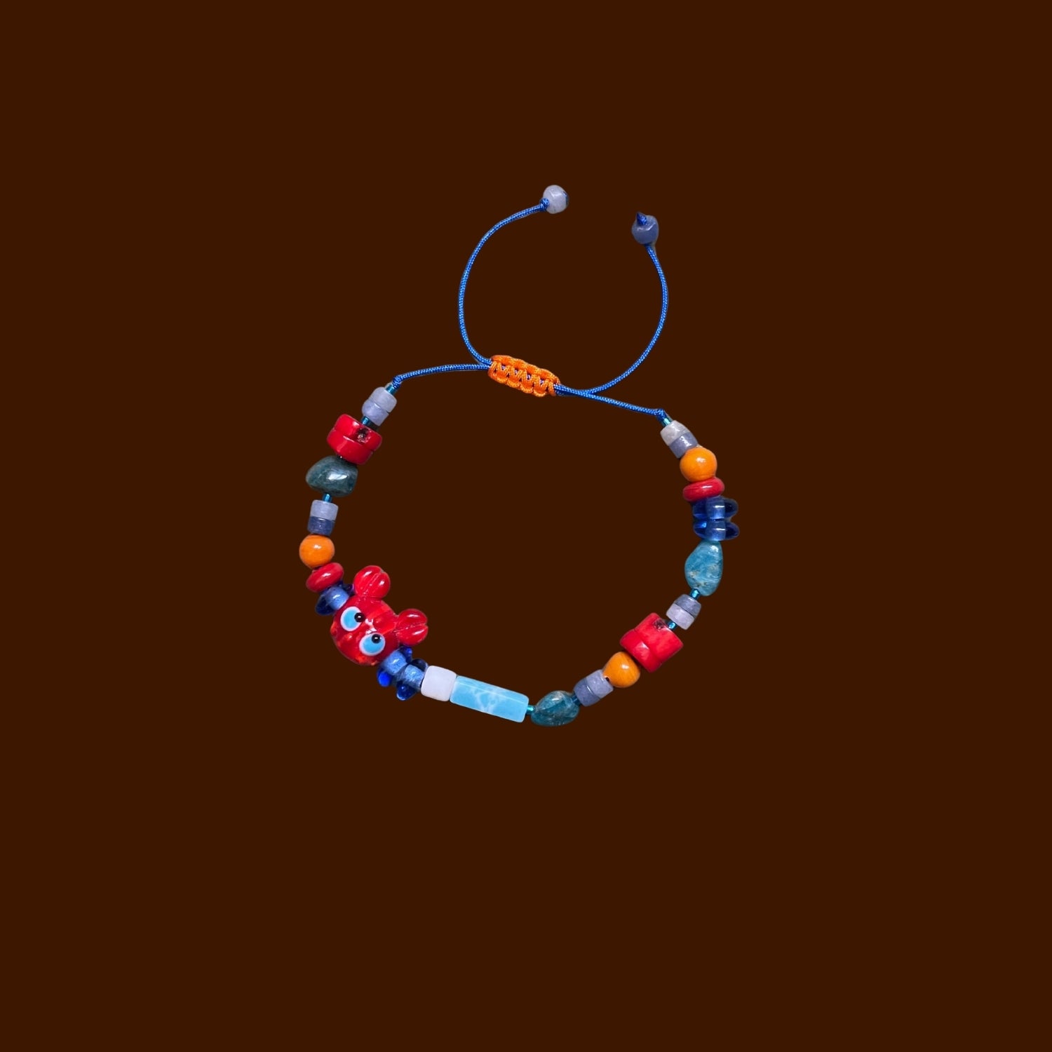 Miss Crab | Cam ve Doğaltaş Boncuklu Boyu Ayarlanabilir Yengeç Figürlü Bileklik