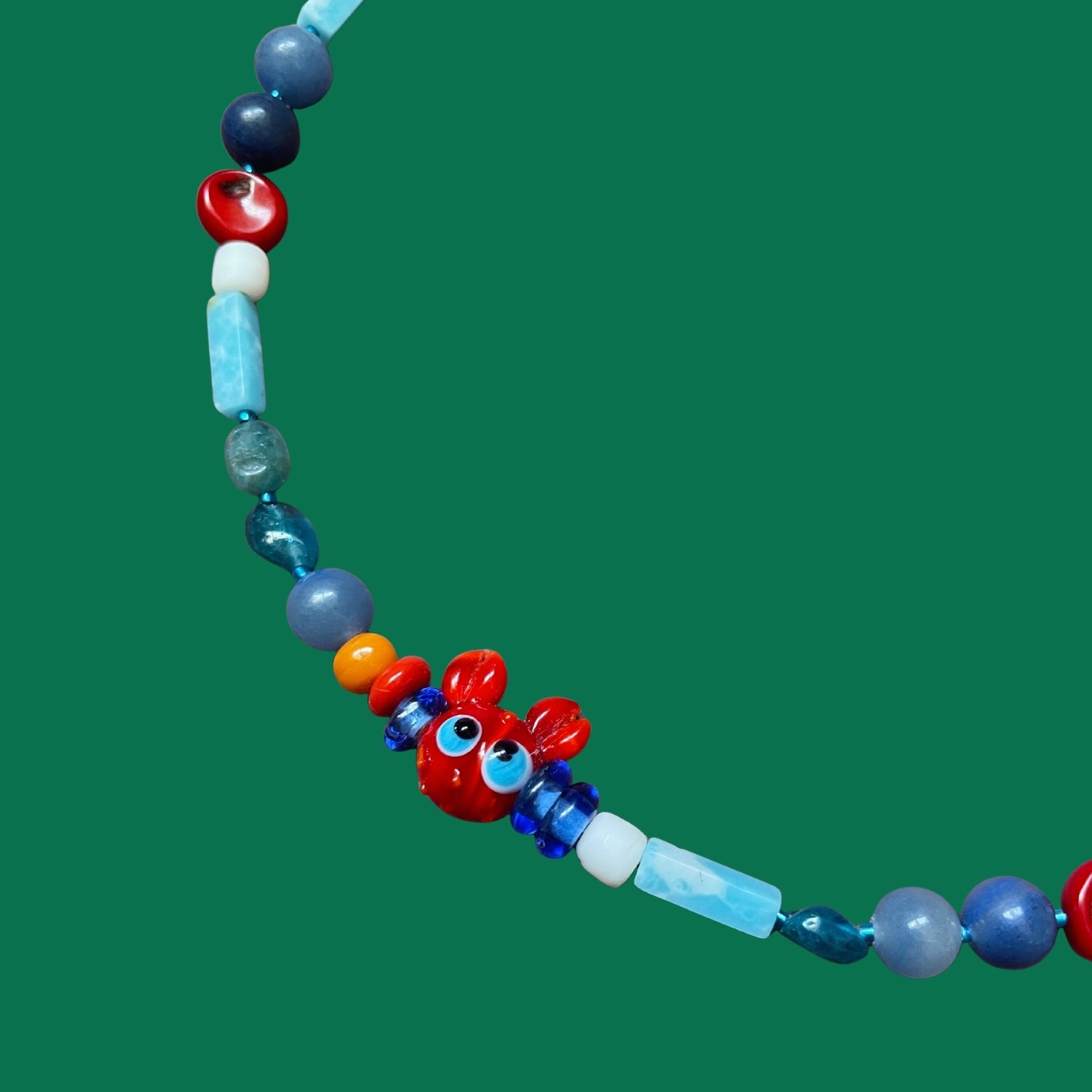 Miss Crab | Cam ve Doğaltaşlı Yengeç Figürlü Kolye