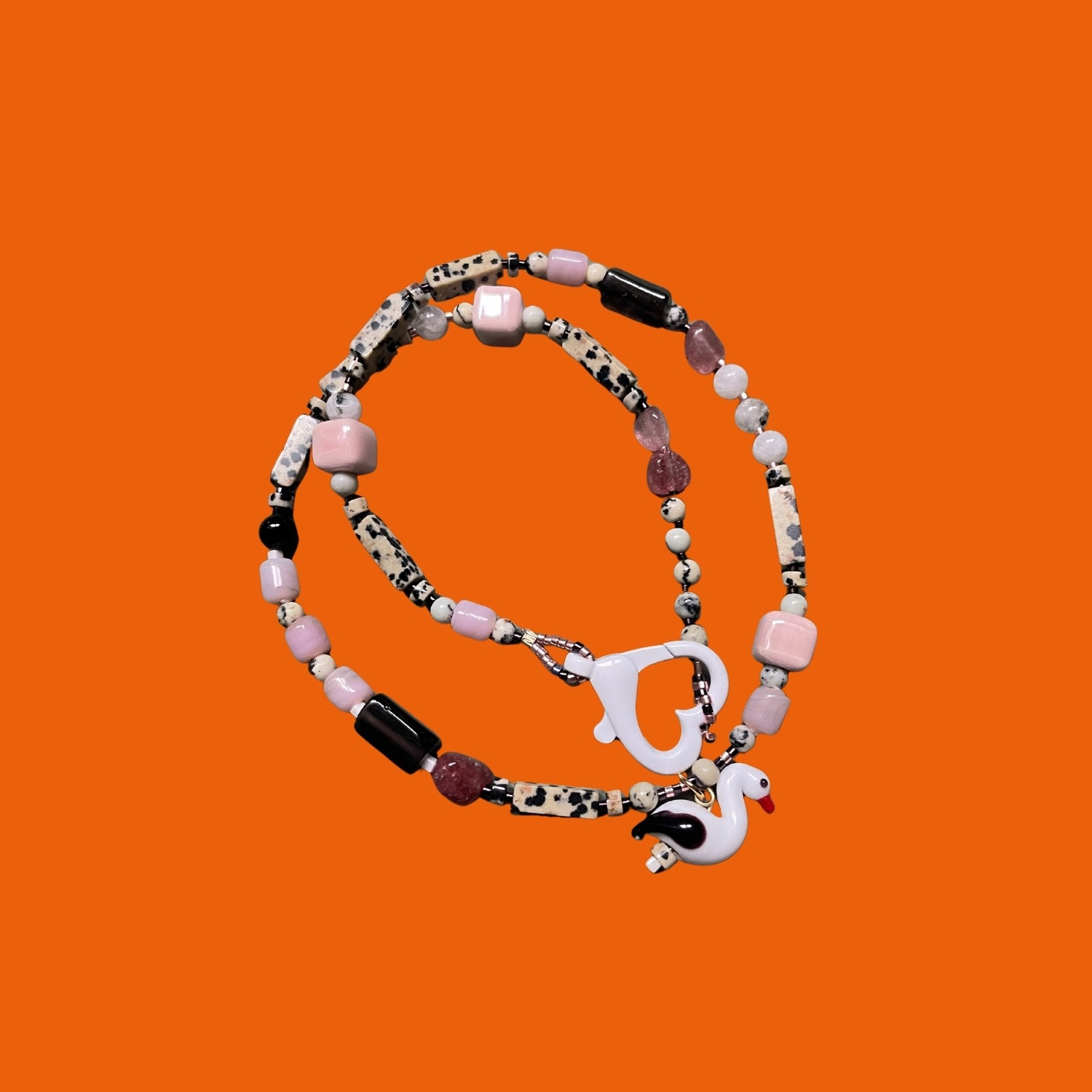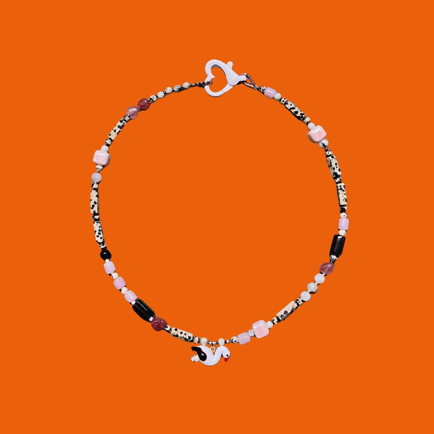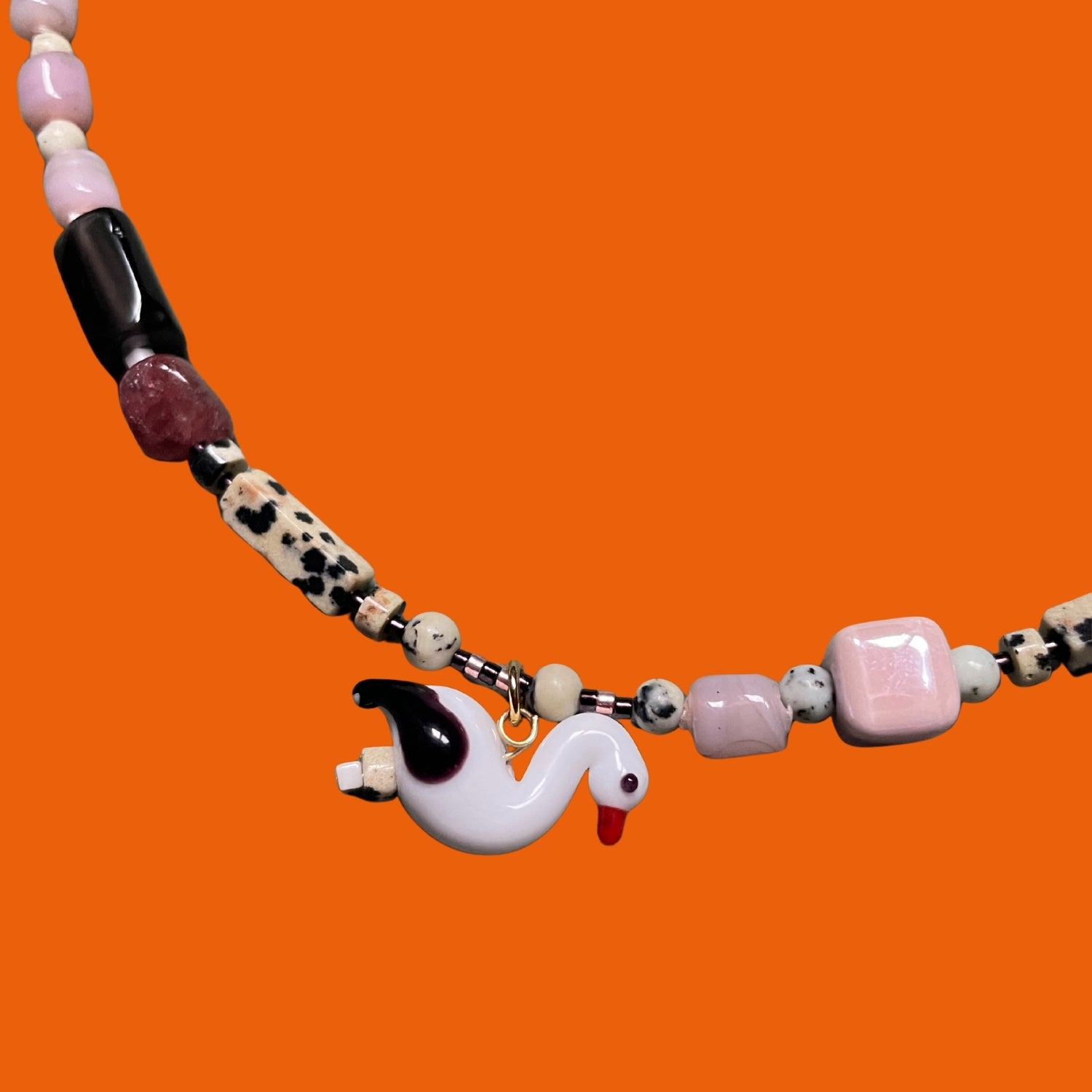 Nathalie | Doğaltaşlı Cam Boncuklu Kuğu Figürlü Kolye