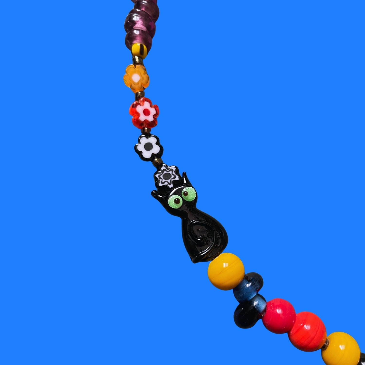 Paspas | Kara Kedi Figürlü Eğlenceli Cam Kolye