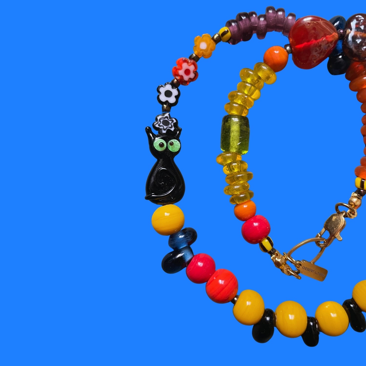 Kendi güzel kedimizden ilhamla ❤️ Bu tasarımımızda Murano cam tekniği ile elde üretilen siyah kedi figürü çeşitli el yapımı boncuklar, nazarlar ve çiçeklerle çevreleniyor. Paspas, sadece bir kedinin yaratabileceği, muhteşem bir kaos 🫶🏼