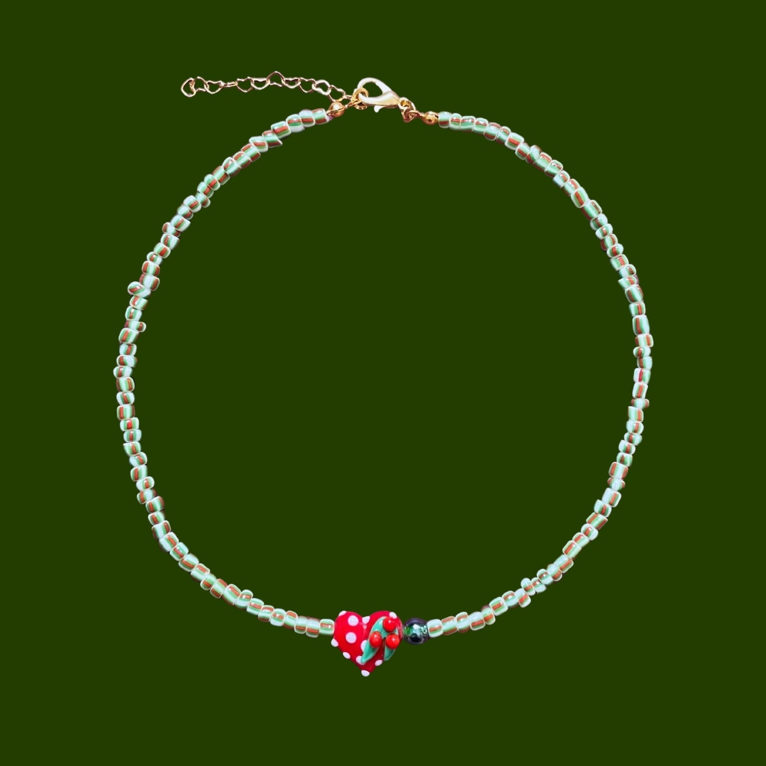 Small Talk with Santa | Yılbaşı Temalı Murano Cam Figürlü Çizgili Cam Kolye