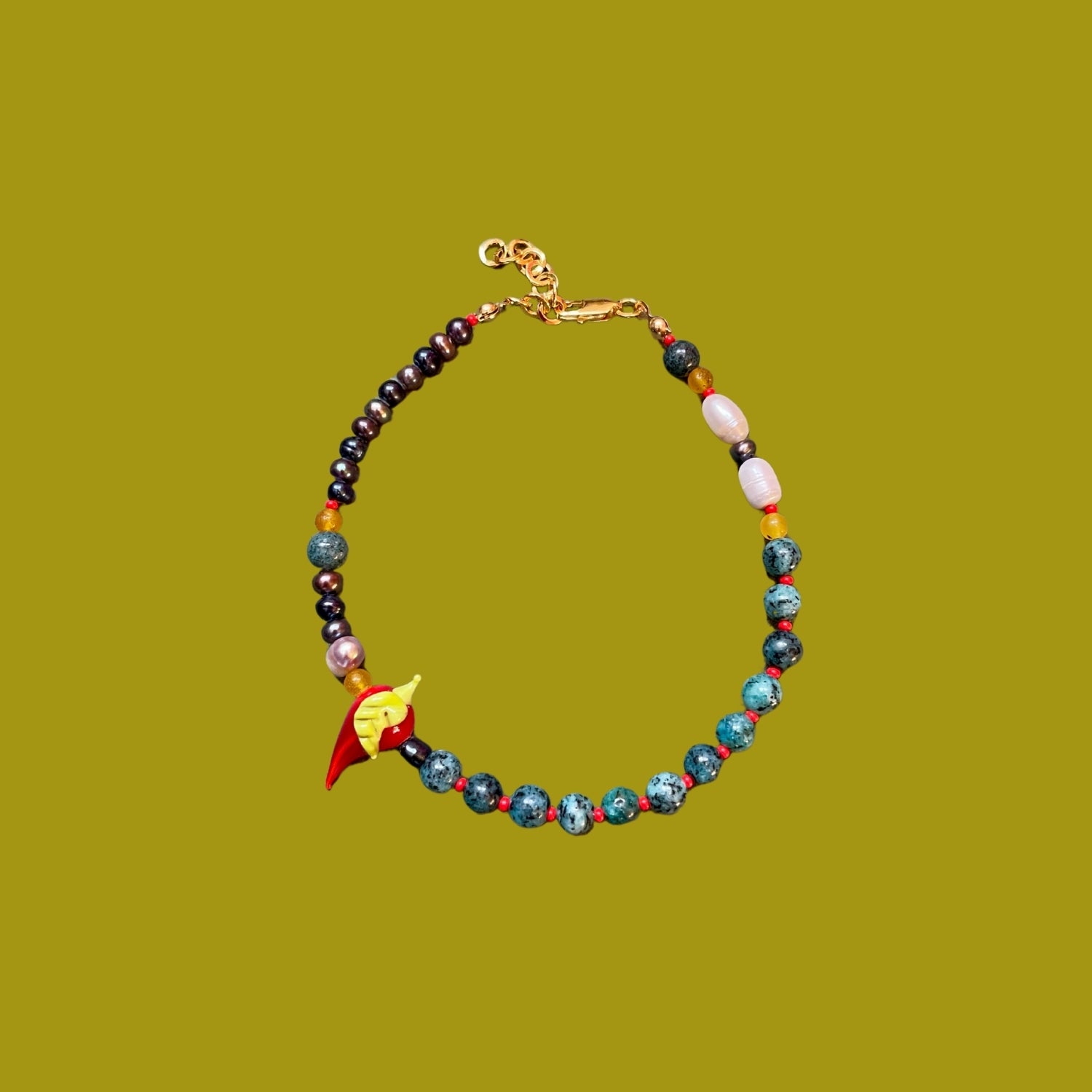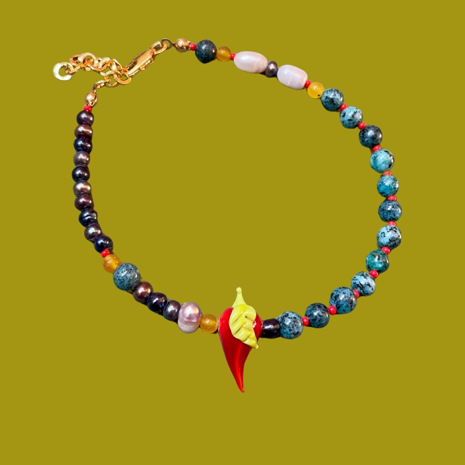 Spice Up | Acı Biber Figürlü Doğaltaş Siyah İnci Halhal