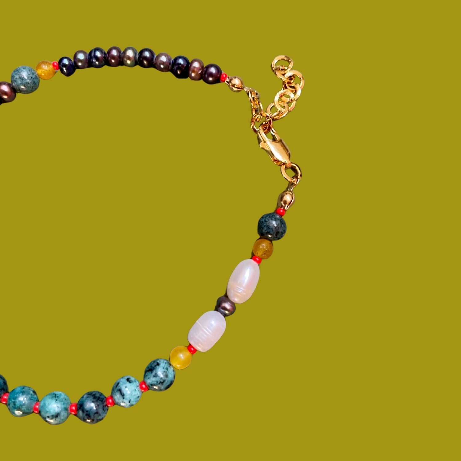 Desert Lobby ürünlerinde kullanılan boncuklar genellikle doğal taş ve camdır. Bu malzemeler tek tek elde üretilir ve elle şekillendirilir. Bu sebeple her bir ürün kendine has ve biriciktir 🧿 Görselde görünen ürün ile size ulaşacak ürün arasında boncuk şekilleri ve renk tonları anlamında ufak farklılıklar olması normaldir.