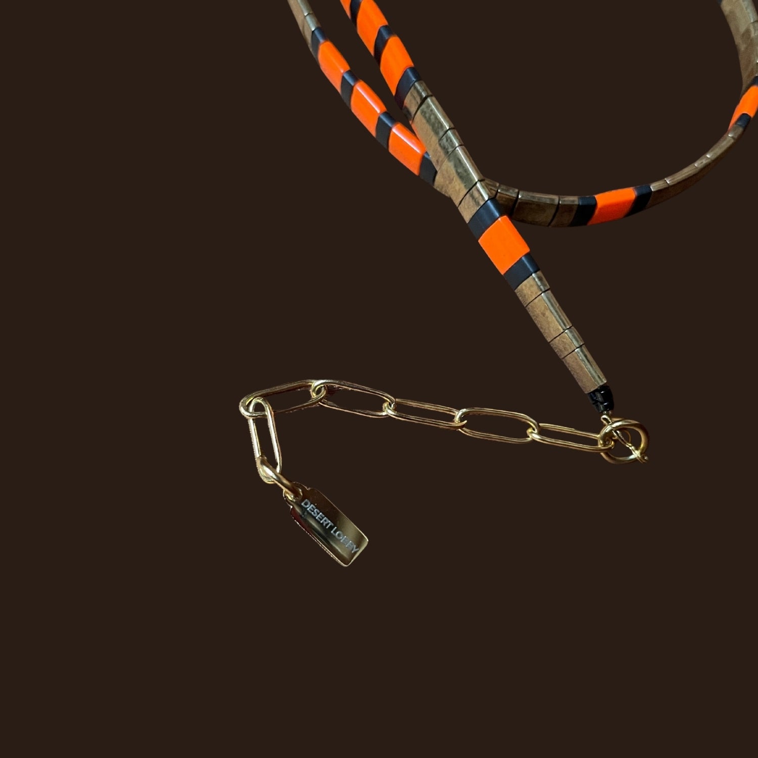 Bu choker kolye, boynunuza tam oturacak şekilde dar yapıda tasarlanmış ve esnek misinaya dizilmiştir. Antik Mısır’ın gizemini ve ihtişamını yansıtan Tutankhamun choker, sıcak bronz tonları ile cesur turuncu Miyuki Tila boncukların güçlü kontrastı üzerine kurulu. Zamansız ve otantik görünümüyle hem modern hem de tarihi bir dokunuş sunuyor. Hafif ve zarif yapısıyla özel günlerde olduğu kadar günlük kombinlerde de şıklık katıyor 🧡🖤